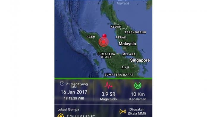 Gempa Medan – Berita terbaru, BMKG Bandar Kualanamu merilis gempa bumi dengan kekuatan 5,6 SR di Barat Daya Kabupaten Deli Serdang dengan kedalaman 10 KM yang terjadi sekitar pukul 19:42 WIB, Senin (16/01/2017) yang terjadi pada malam hari.